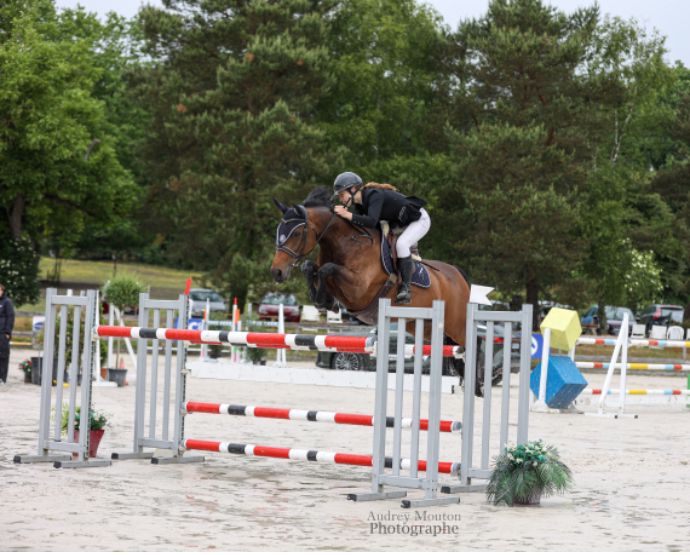 Petite jument d 1m55 elle évolue actuellement sous la selle de sa jeune cavalière en épreuve amateur 1 Grand Prix 120/125, épreuve Elite et championnat