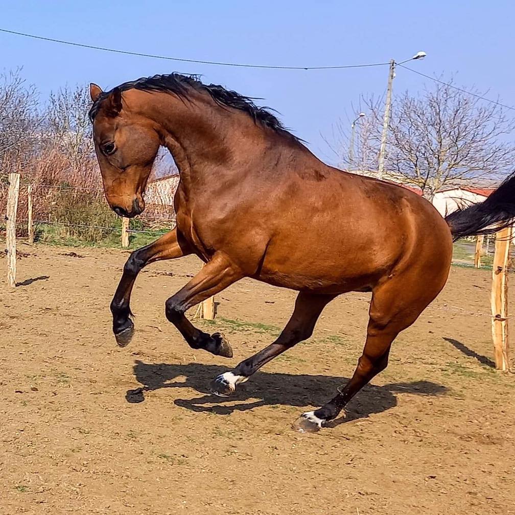 Issue de la souche basse de Qing du Briot CCE. Une carrière sportive remarquable, qui s’achève sur un ISO 139, avec une grande régularité, de très nombreuses places dans le Top 5 en Pro 1 et Pro 2 (130/135), ainsi que plusieurs victoires sur ces mêmes épreuves.